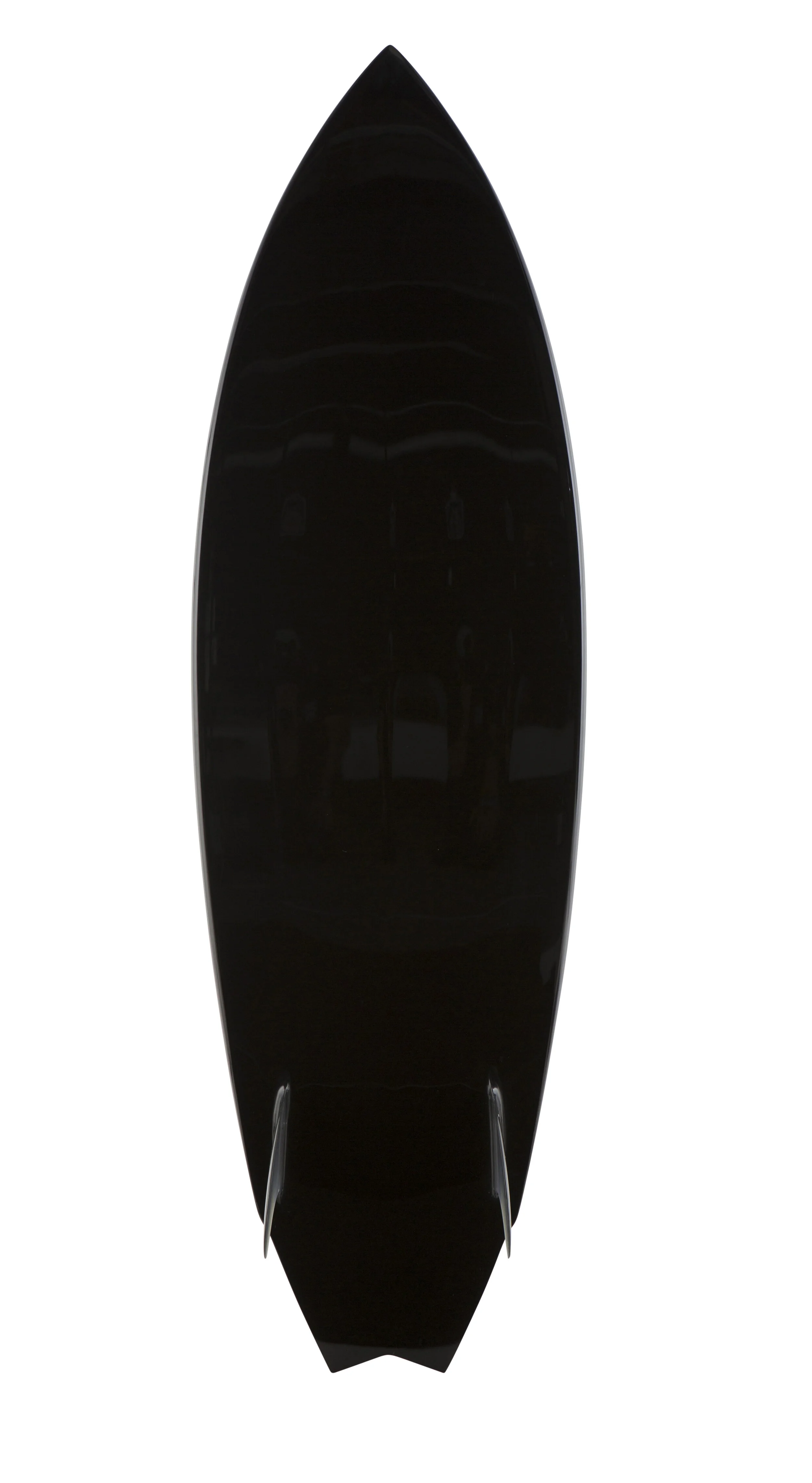 This is an MR style twin fin with a bit extra. Bottom is v in the nose to a channeled double concave exiting to steep v in the tail. Similar to the NT fish. This board has a pulled in sleek design but has volume for a natural flow and wave catching ability. This board has a lot of drive and is loose off the tail without sliding out. Available with a mini trailer for more stability when the waves are a well overhead.